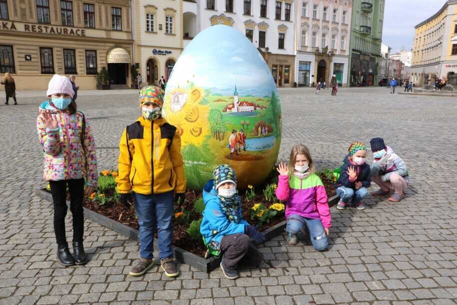 Galerie: Velikonoce jsou za dveřmi. Svatý týden připomínají na olomouckém náměstí obří kraslice a slaměné figury